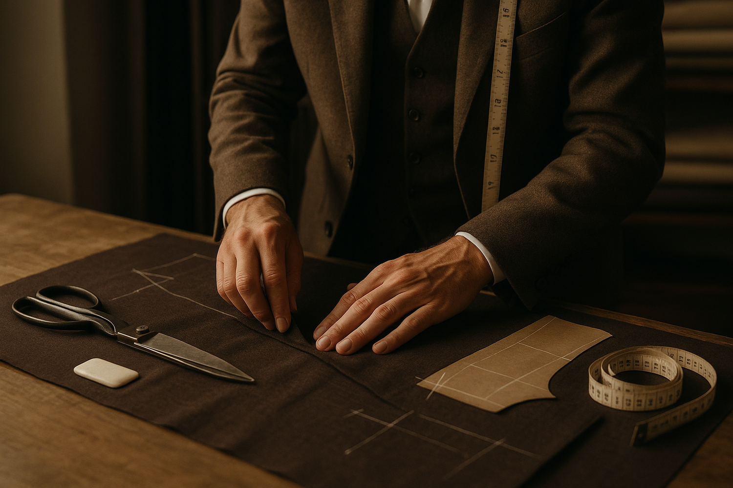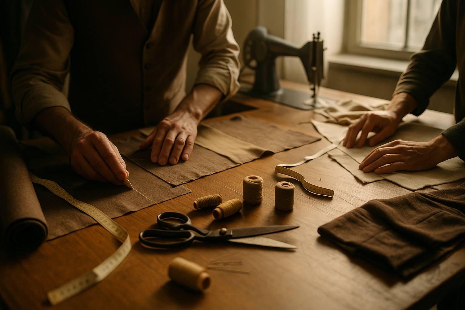 In the atelier, this knowledge comes to life. Here, precision is not a rule but a rhythm. Skilled hands move in harmony, blades cut with certainty, and needles trace lines that are felt before they are seen. Every seam, every fold, every finish bears witness to a mastery that can only be acquired through experience. This is the heart of Ladore’s savoir-faire — where tradition and modernity meet in a movement that is both controlled and inspired.