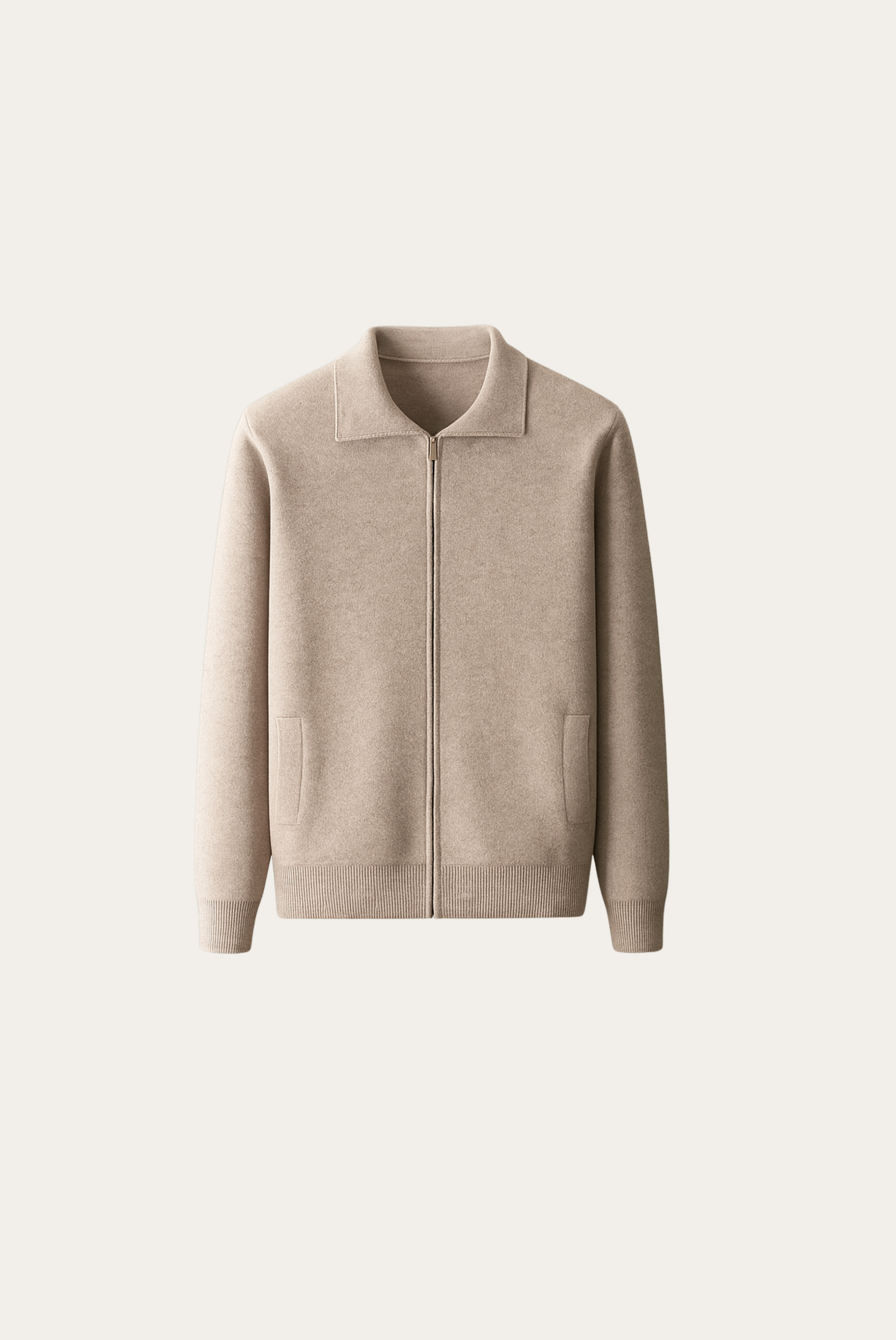 Crafted from 100% premium wool, this cardigan is made with thick, luxurious yarns for exceptional warmth and comfort. Featuring a distinctive shirt collar and a minimalist zip closure, it combines timeless sophistication with practical design. Perfect as a layering piece or standalone item, this cardigan adds effortless elegance to any wardrobe.