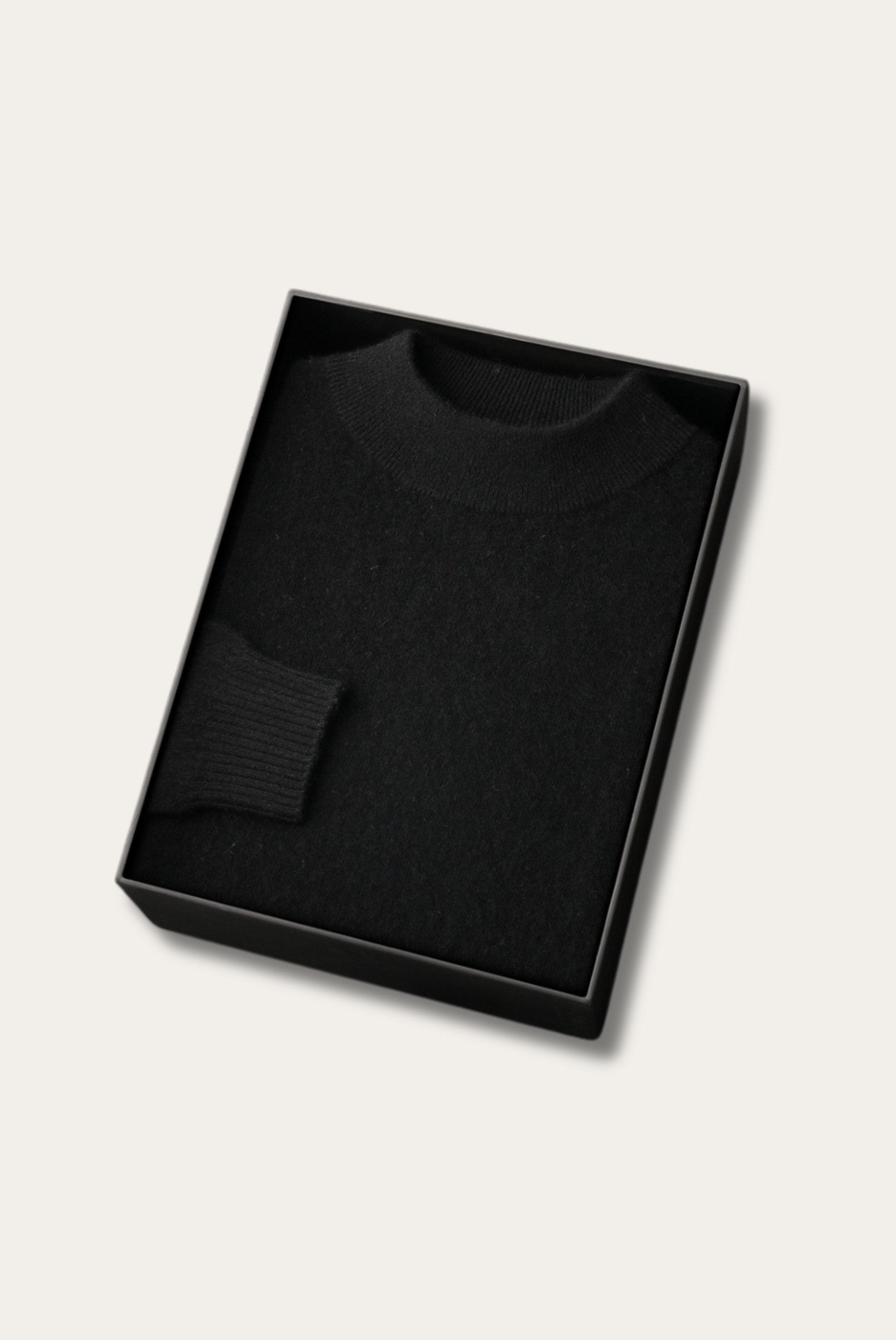 Made from a premium blend of 35% cashmere and 65% pure wool, this pullover features a half-turtleneck collar that adds a subtle yet distinctive touch. Its soft texture and versatile design make it an ideal choice for any season.