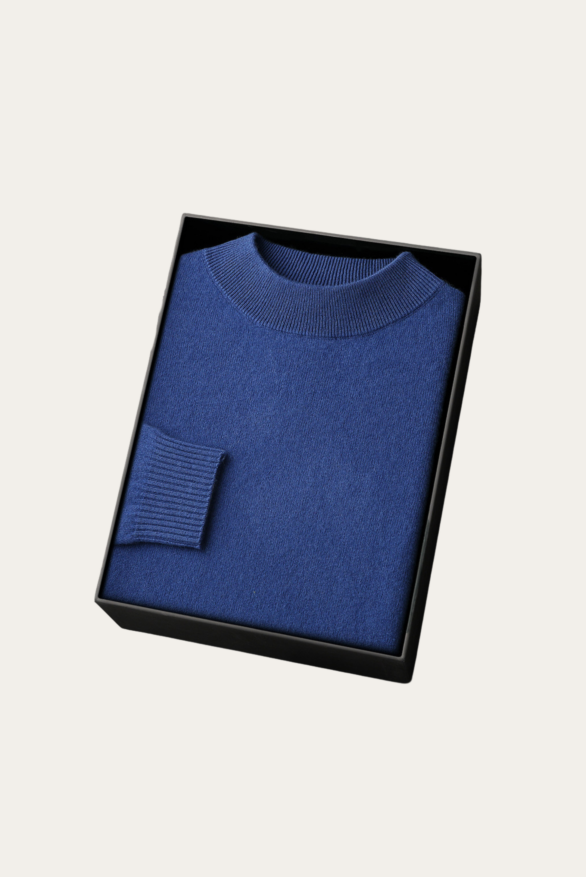 Made from a premium blend of 35% cashmere and 65% pure wool, this pullover features a half-turtleneck collar that adds a subtle yet distinctive touch. Its soft texture and versatile design make it an ideal choice for any season.