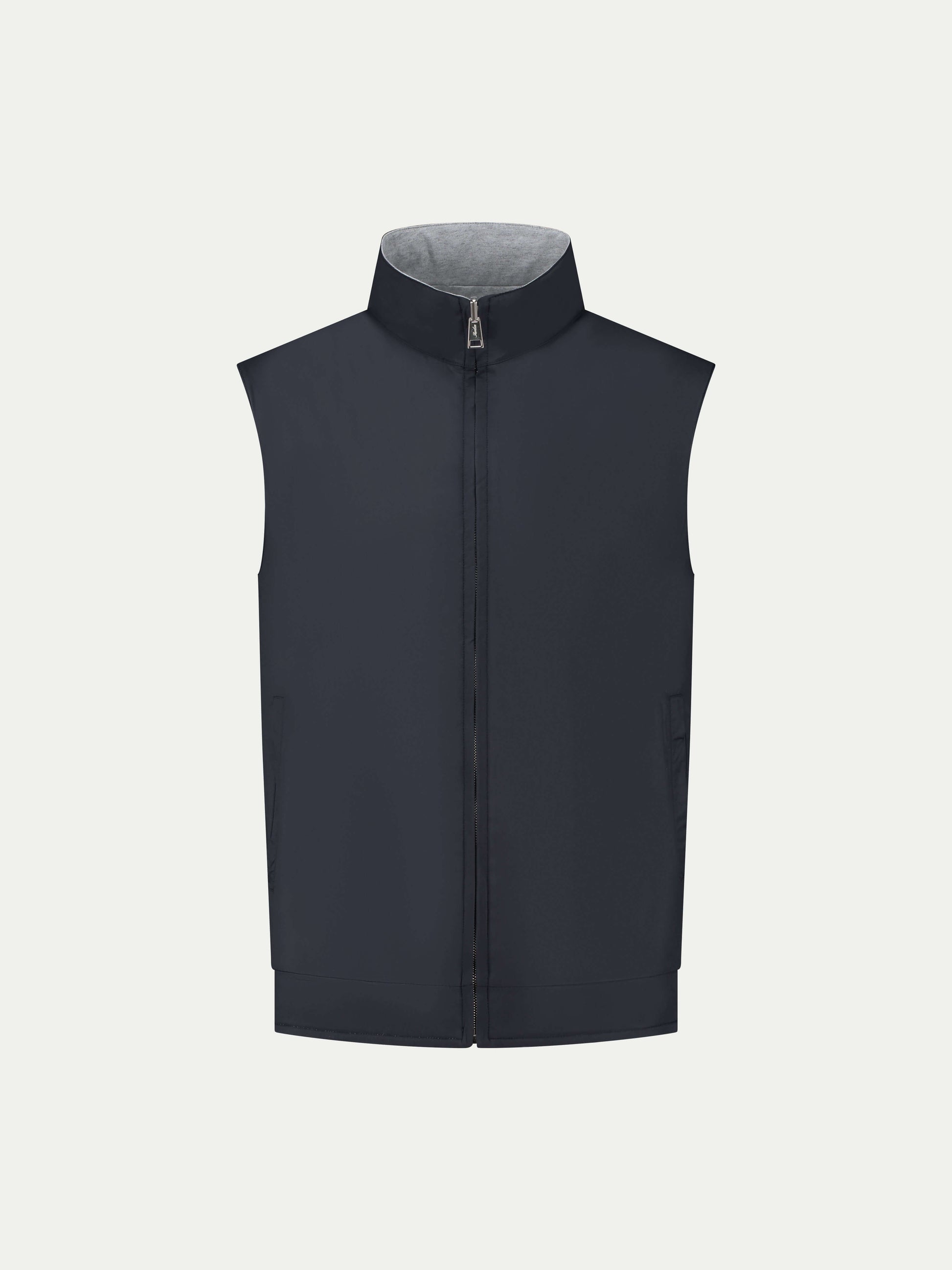 This Navy Body Warmer adds a luxurious touch to your leisurely days spent by the shore. The soft matte outer shell is crafted from recycled fish nets and boasts a wind and waterproof finish. The interior is lined with a cashmere blend for lightweight yet sumptuous comfort. The lightly-padded design provides a warm embrace while exuding chic Mediterranean style.